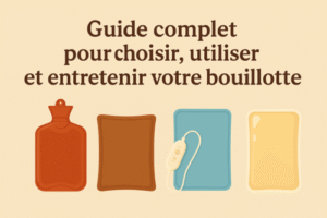 - Guide complet pour choisir, utiliser et entretenir votre bouillottepar Une-Bouillotte.comGuide complet pour choisir, utiliser et entretenir votre bouillotte Bien plus qu’un simple accessoire d’hiver, la bouillotte soulage, réconforte et favorise la détente toute l’année : chaleur apaisante, relaxation musculaire, diminution du stress… Mais face aux nombreux modèles (à eau, sèche, électrique, gel, froid), comment choisir la bouillotte idéale, l’utiliser en toute sécurité et la… Lire la suite : Guide complet pour choisir, utiliser et entretenir votre bouillotte